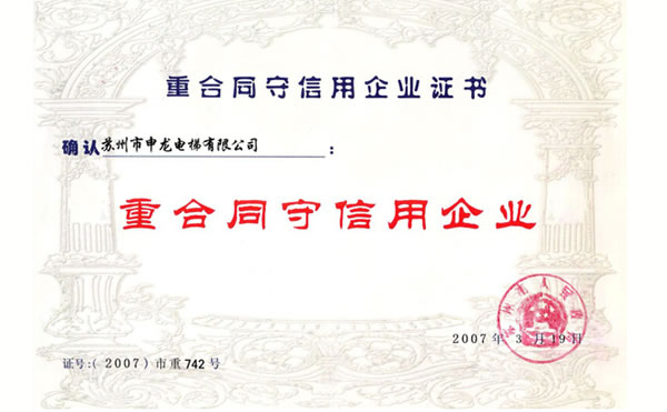 蘇州市重合同守信用企業證書