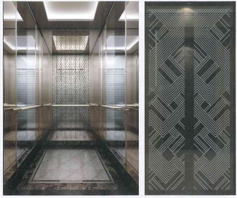 轎門:玫瑰金鏡面蝕刻     層門:香檳金鏡面蝕刻
